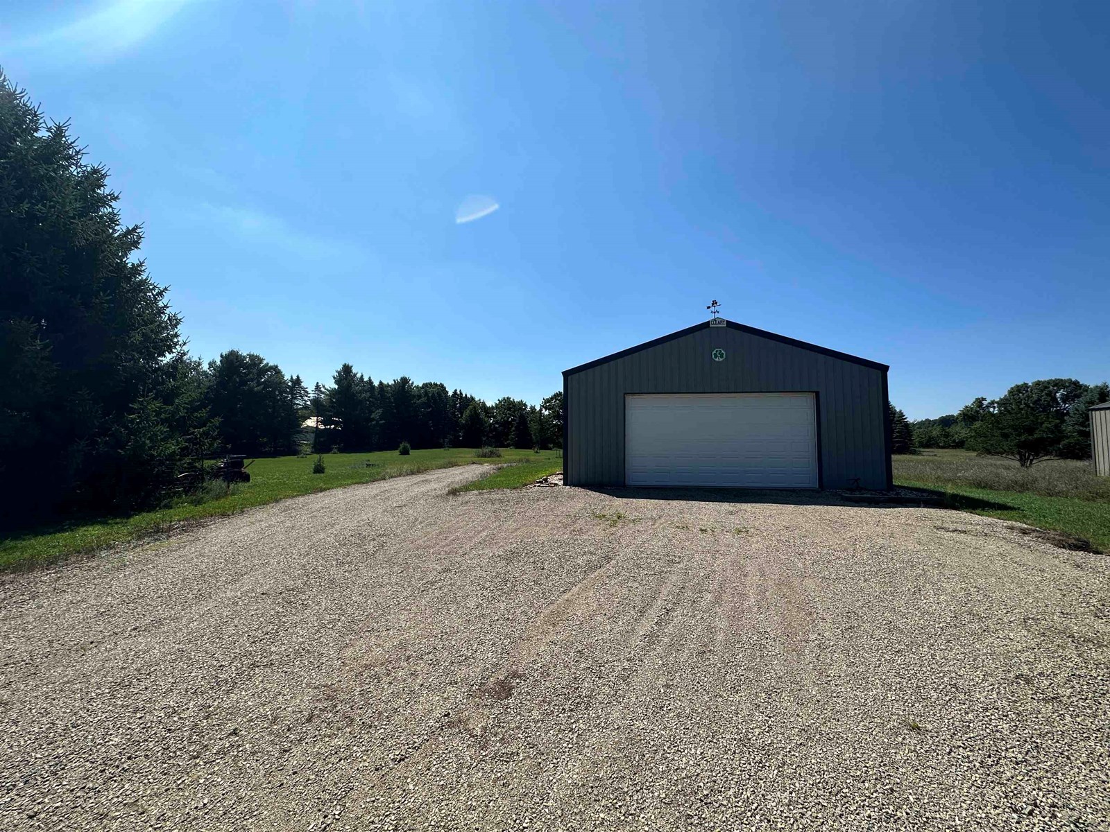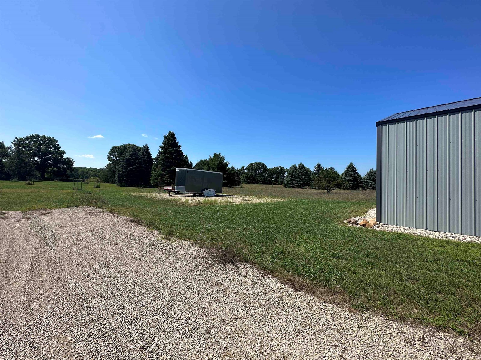 Building has electricity and concrete floors. 9ft high x 18ft wide garage door. 400 amp electric service to property - 200 amp to building and 200 amp available for future home build. Gravel driveway and trees have been planted as well. Zoned Residential.