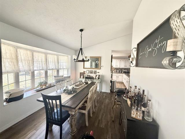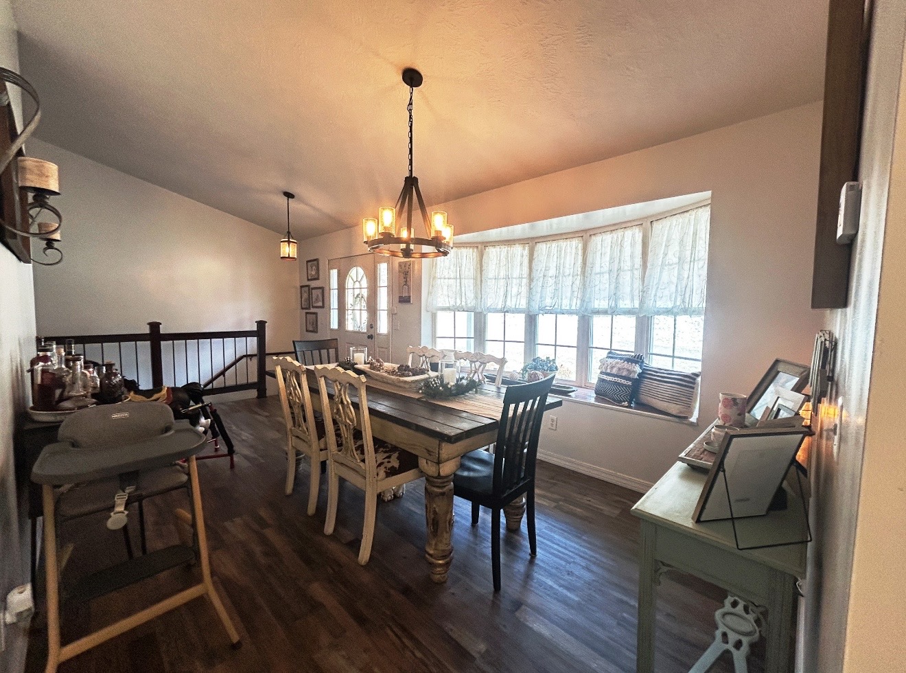 Open-concept living area with vaulted ceilings and large windows