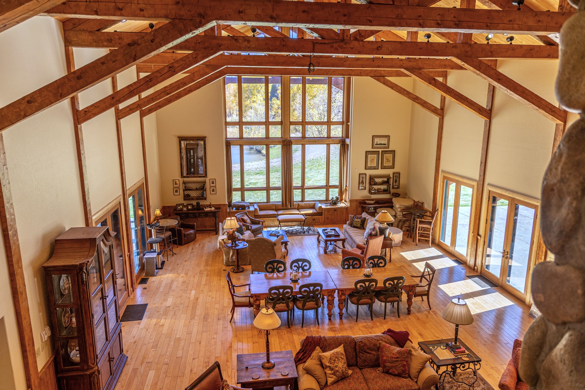 The River House is that rare Colorado estate that is surrounded by public lands on three sides, offering exclusive access to thousands of acres of BLM and US Forest Service lands. Anthracite Creek, which is known as an excellent trout stream, flows through the center of the property. The property is actually split between GMU 53 on the west side of Anthracite Creek and GMU 521 on the east side. The former World Record Elk taken by John Plute was harvested at the head of Dark Canyon, just a few miles up the valley from the River House. Hunting is excellent for trophy elk, mule deer, bear, grouse, and turkeys, and fly-fishing on the Anthracite can be very lively for chunky rainbow trout, not to mention the stocked pond in front of the main house. A well-built bridge across Anthracite Creek leads to a good access road up to the Upper Meadow, which grants access to thousands of acres of US Forest Service lands comprised of aspens, oak brush, Douglas fir, and open meadows—excellent big game habitat.