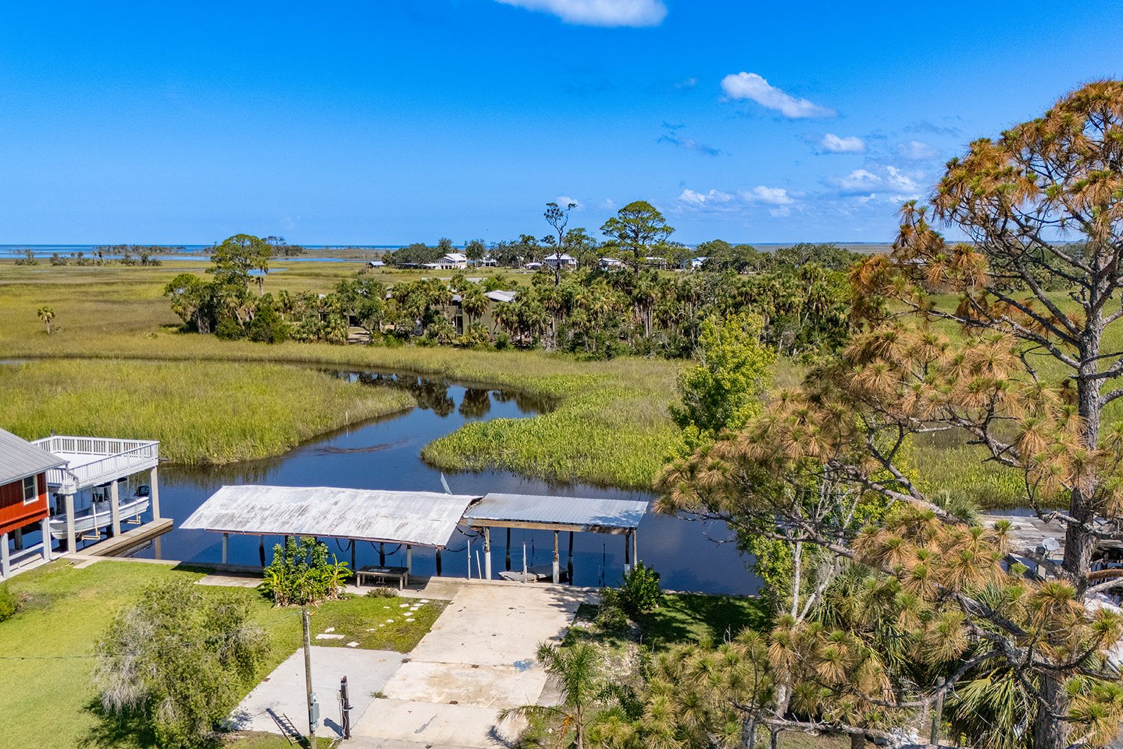 Welcome to your perfect coastal retreat in Suwannee, Florida! This brand-new 2 bedroom, 2 bathroom home offers both comfort and stunning natural views. Enjoy peaceful mornings on the covered front porch overlooking the tranquil marsh, or unwind on the open back deck surrounded by the sights and sounds of nature. The home sits on a freshwater canal with direct access to the renowned Suwannee River, offering endless opportunities for boating, kayaking, and some of the best freshwater and saltwater fishing in the area. A private boat house makes it easy to head out on the water whenever you please, and a convenient shed provides extra storage for your gear. Whether you're casting a line for bass or redfish, or simply enjoying the abundant wildlife—like deer, otters, and a variety of native birds—this property is a true outdoor lover's paradise. Perfect as a weekend getaway or a peaceful full-time residence, this home invites you to embrace the beauty and adventure of life on the water.