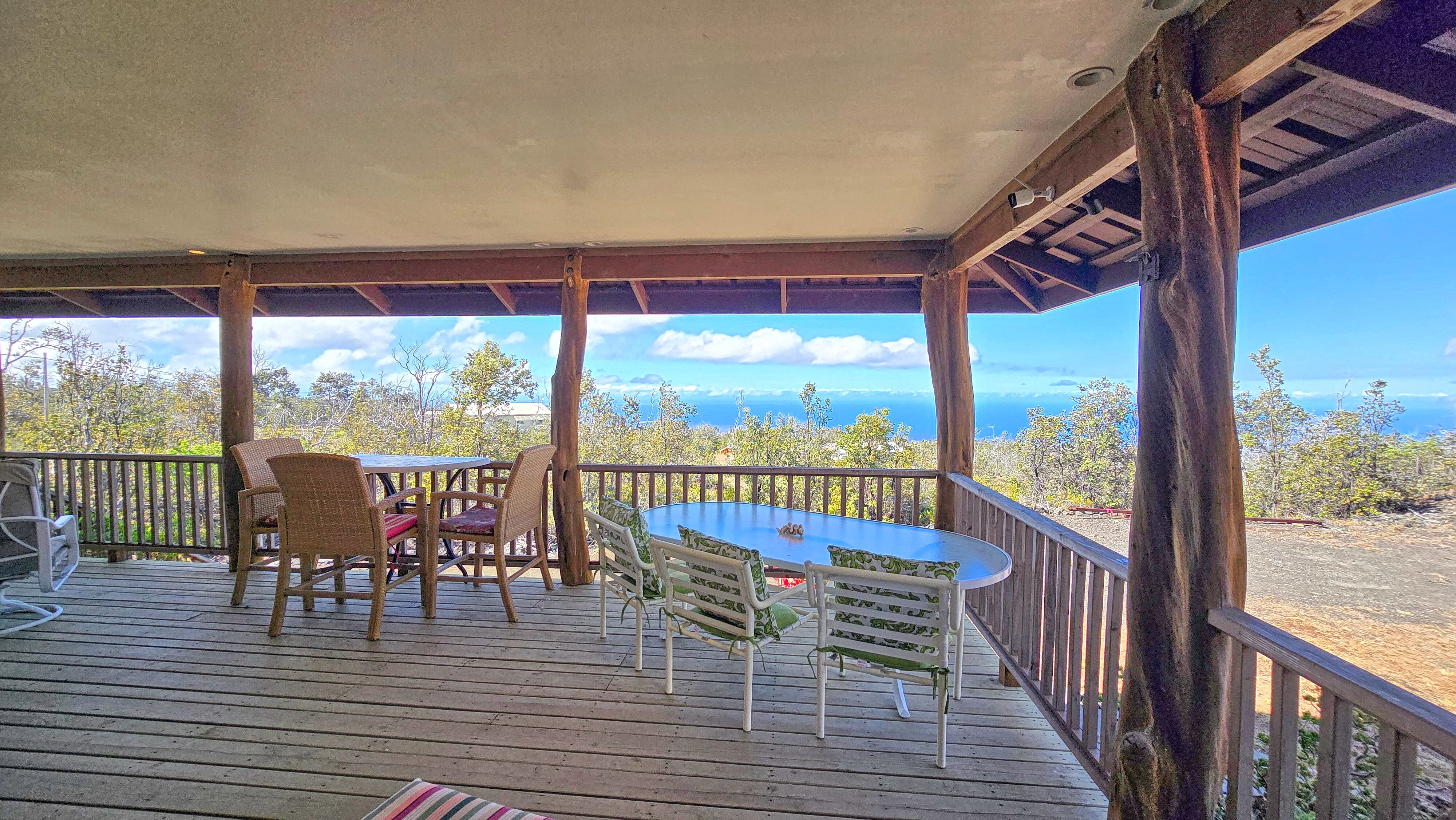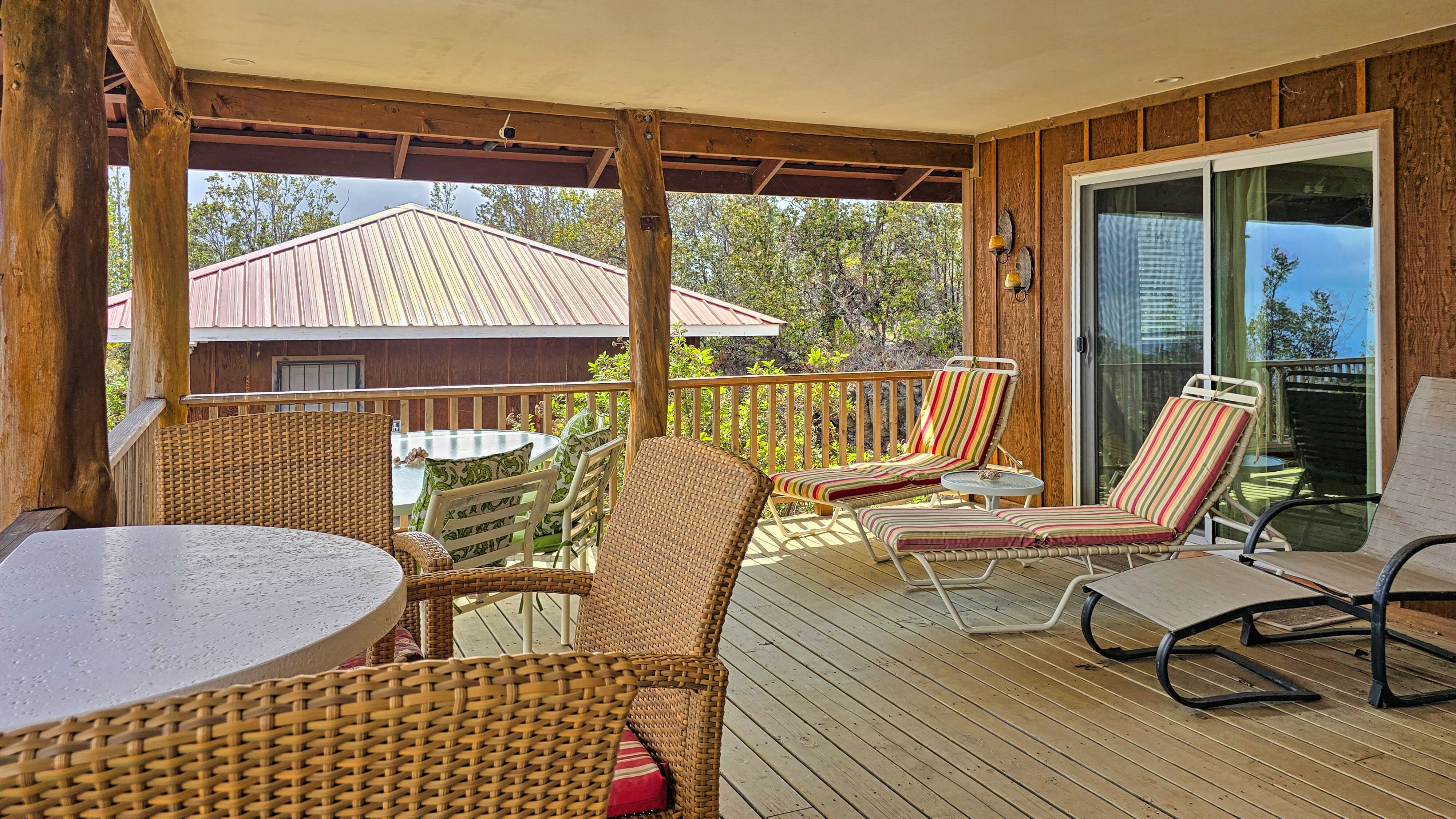 * 432 sq ft covered lanai with ʻŌhiʻa posts and low-voltage recessed lighting—ideal for sunset dining or morning coffee