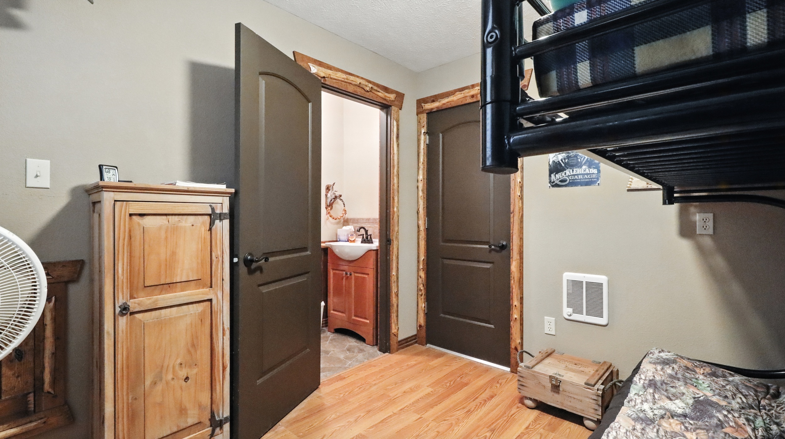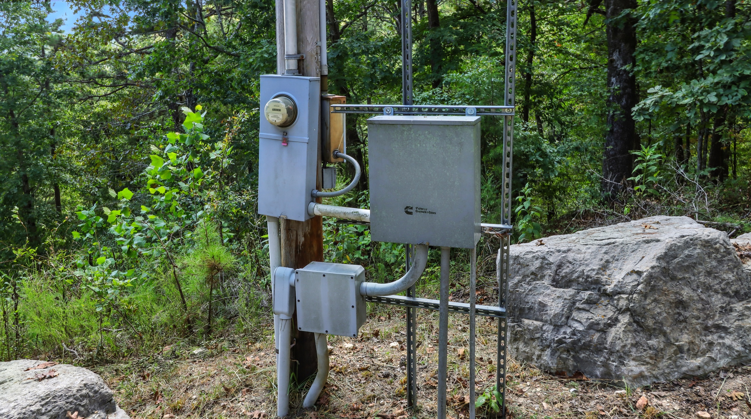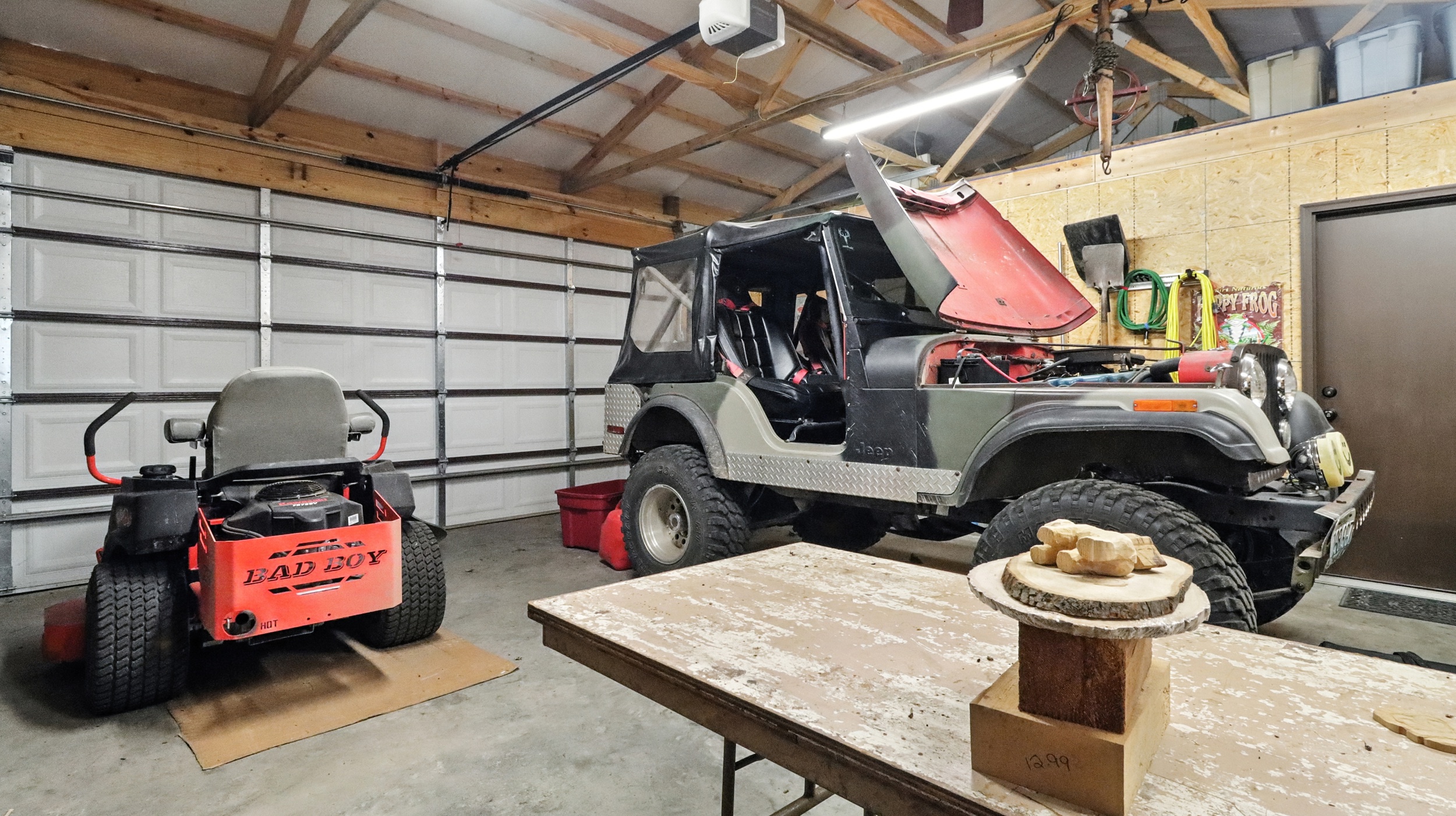 A full-property backup generator ensures self-reliance, capable of powering both the home and shop during any outage—ideal for off-grid living or year-round comfort.