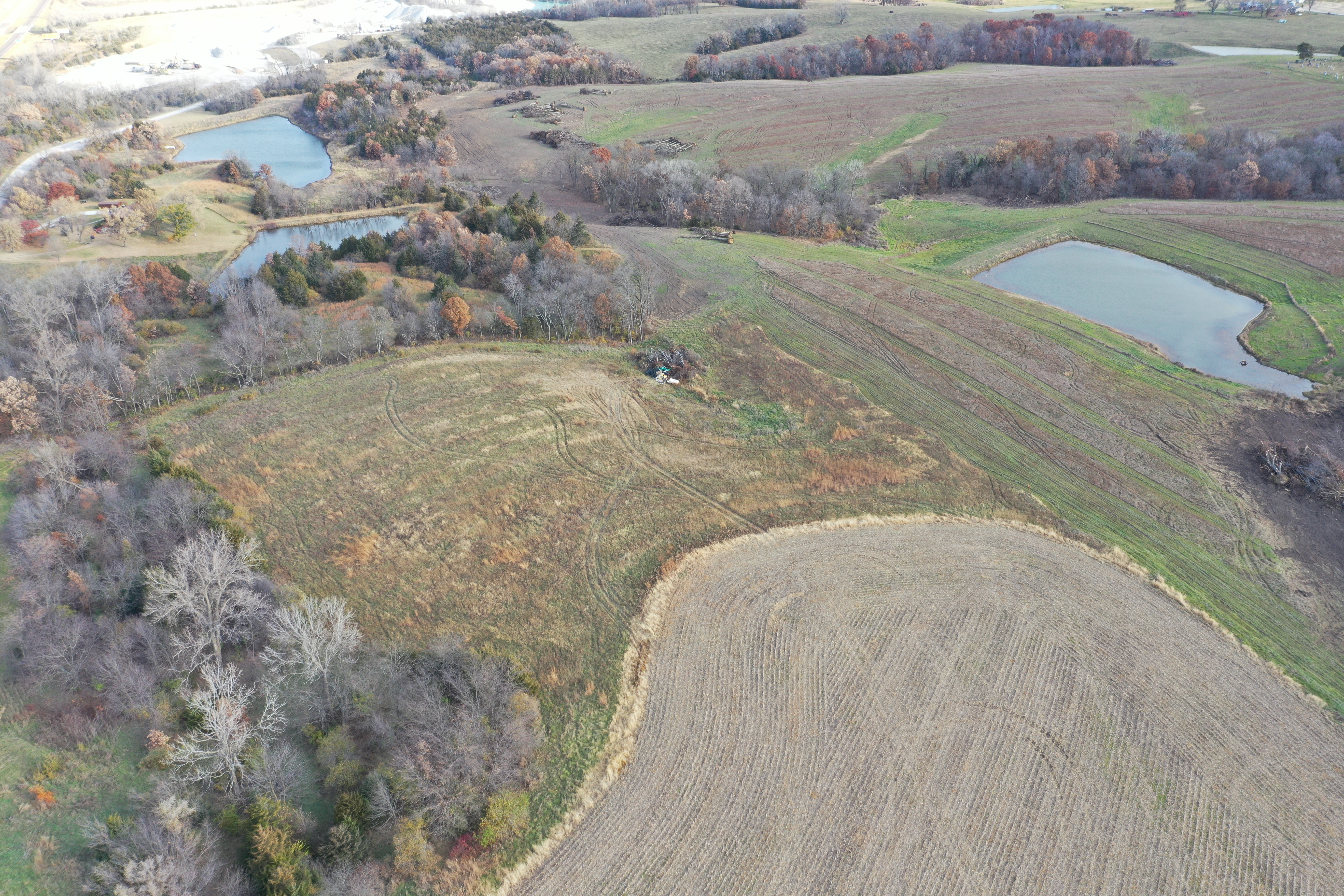 The land offers a blend of 9 acres of row crop, over 3 acres of grass, and approximately 4 acres of mature trees lining the perimeter for natural privacy. All major utilities—including three-phase electricity—run along the west side of the property, creating a ready-to-develop opportunity in a high-visibility location.