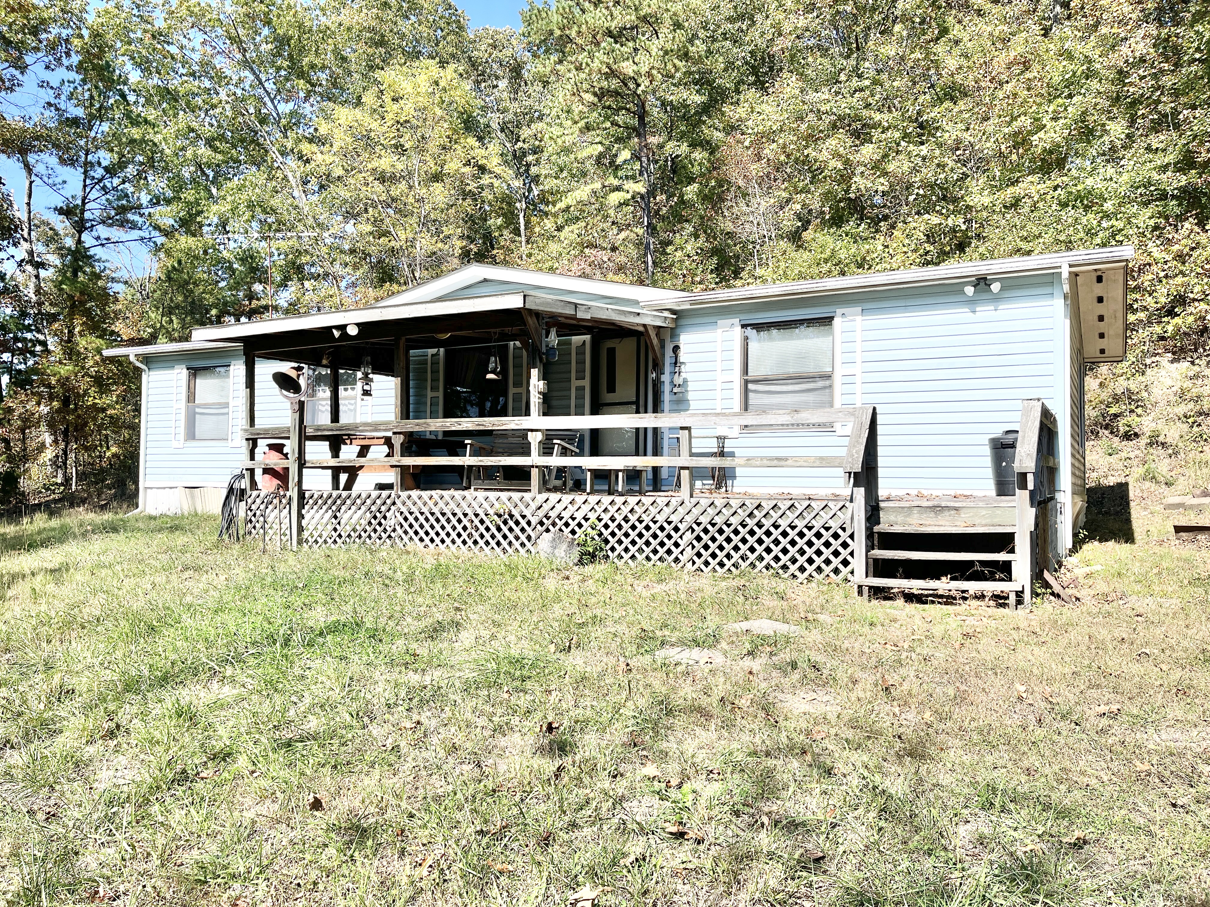 Escape to your own private retreat on 44.07 wooded acres filled with mature timber and abundant wildlife, backing up to 43,263 acres of Mark Twain National Forest for unmatched access to hunting, horseback riding, backpacking, and exploring. The 1986 Coleman 24x52 manufactured home is currently set up as the perfect hunting cabin or nature getaway, featuring 3 bedrooms, 2 bathrooms, and an open concept living, dining, and kitchen area. The primary suite offers a soaking tub with shower. Functional kitchen with stove, refrigerator, and dishwasher, plus laundry area and large closets. Central A/C and electric heat with well water and septic. Enjoy peaceful mornings on the covered front deck or entertain guests on the rear deck. Low yearly taxes at just $136. Access by easement by prescription. With a little TLC and vision, this property could become your ideal weekend retreat, hunting base, or private homestead. Schedule a private showing today!