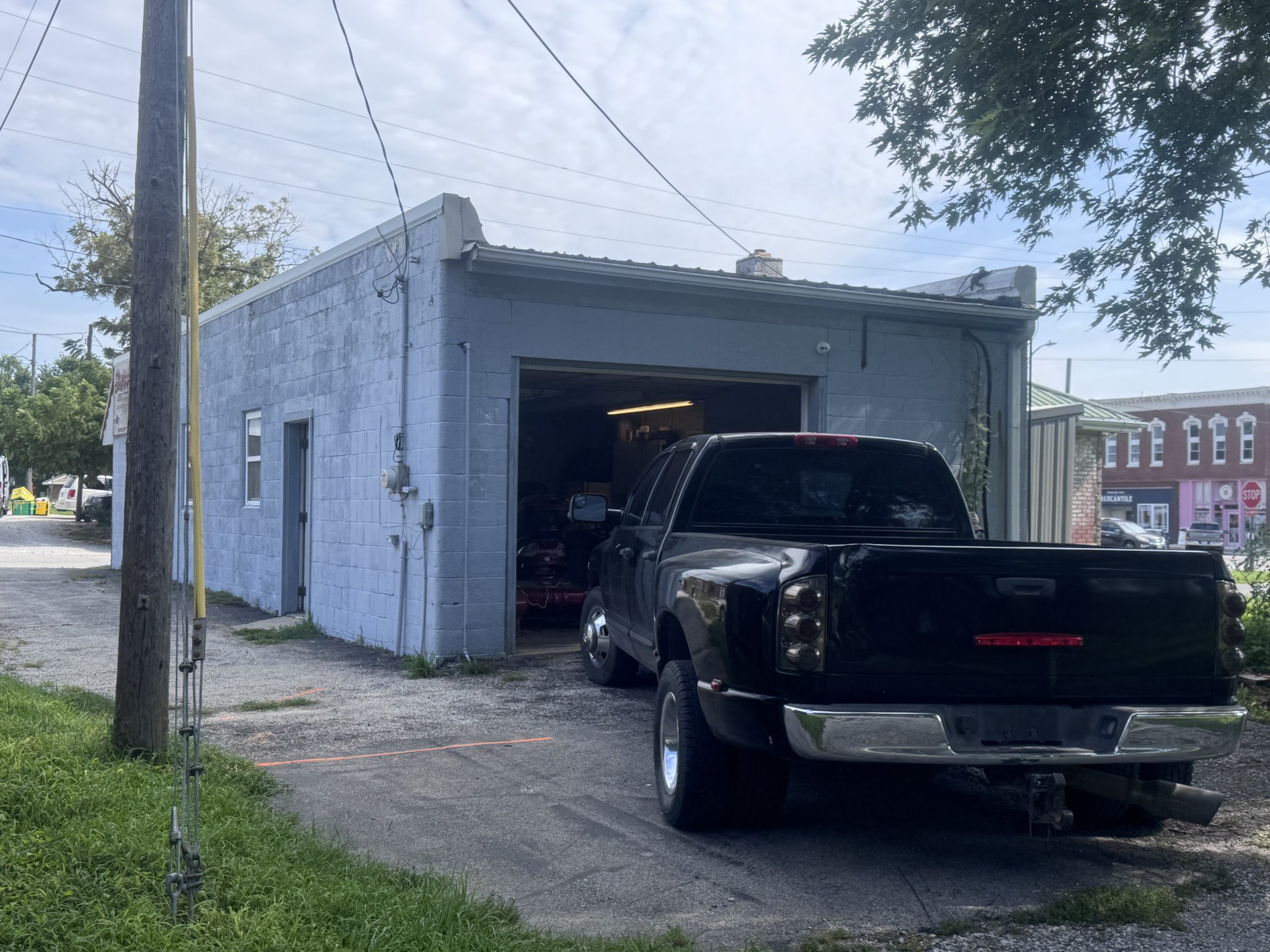 2 commercial lots for sale with 50 x 20 block building with finished office, full bath, kitchen and shop in the back. Rollup garage door in the back of the building. This building has central air & heat. 12x20 storage shed sits behind this building.
