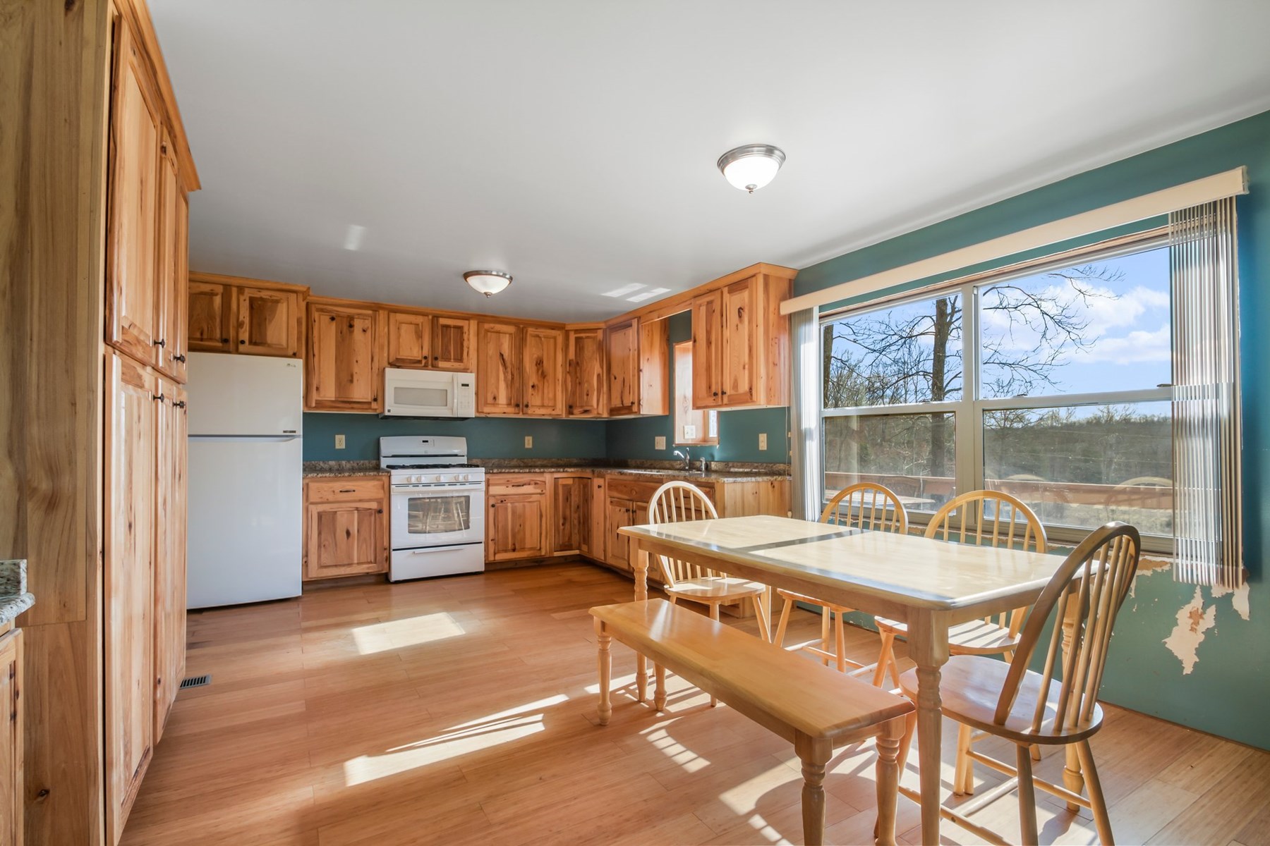 Beautiful Views of the Ozark Hills from the Ranch-Style Cedar Home. 3 Bedrooms and 2 Baths with Open Concept, Vaulted Wood Ceilings with Cedar & Pine, Metal Roof and Hardwood Floors. New Country Kitchen with Hickory Cabinets, Buffet Bar, Granite Countertops, and Large Pantry. Enjoy Country Living and Quiet Solitude on the Large Deck overlooking the property.