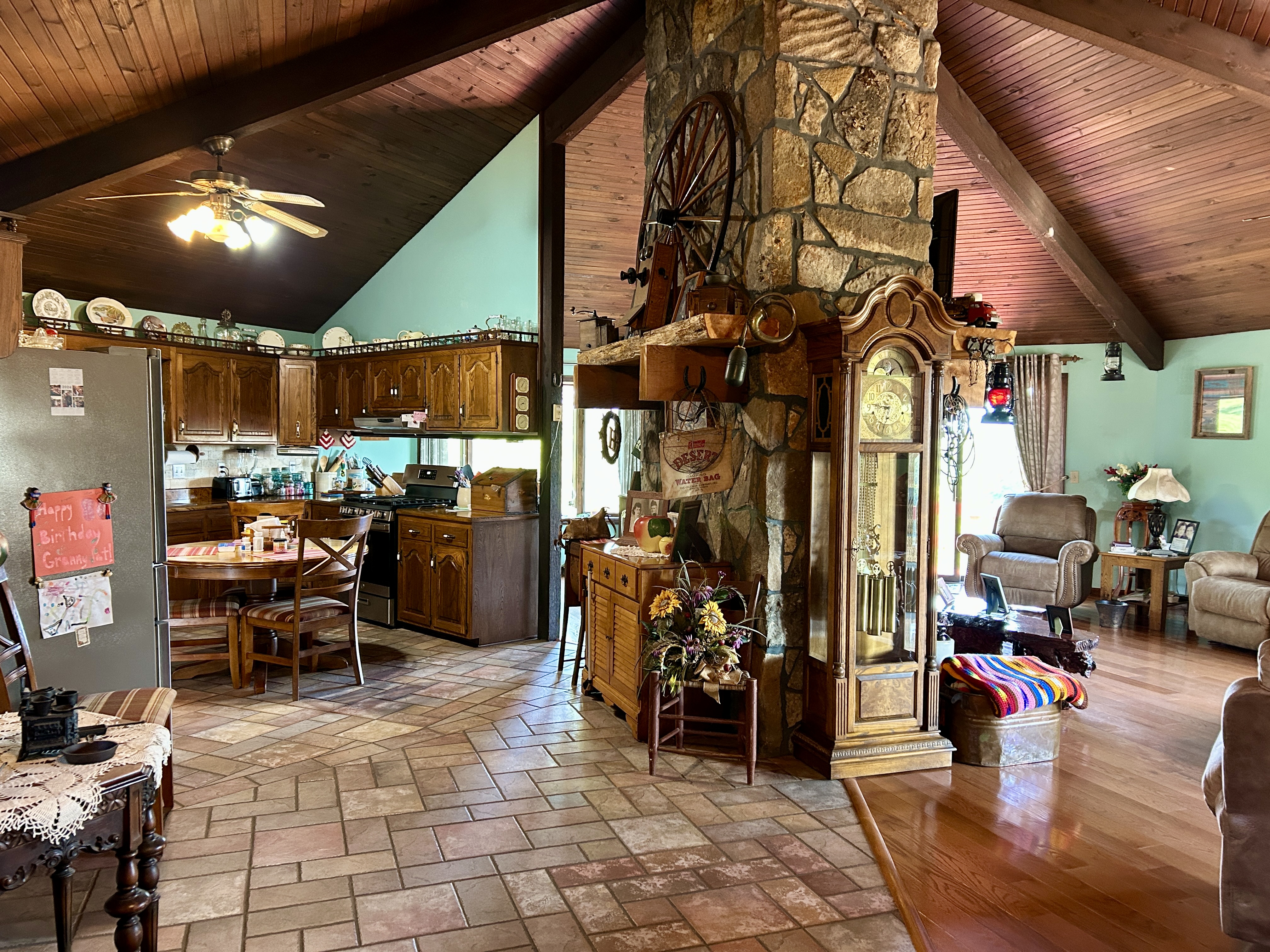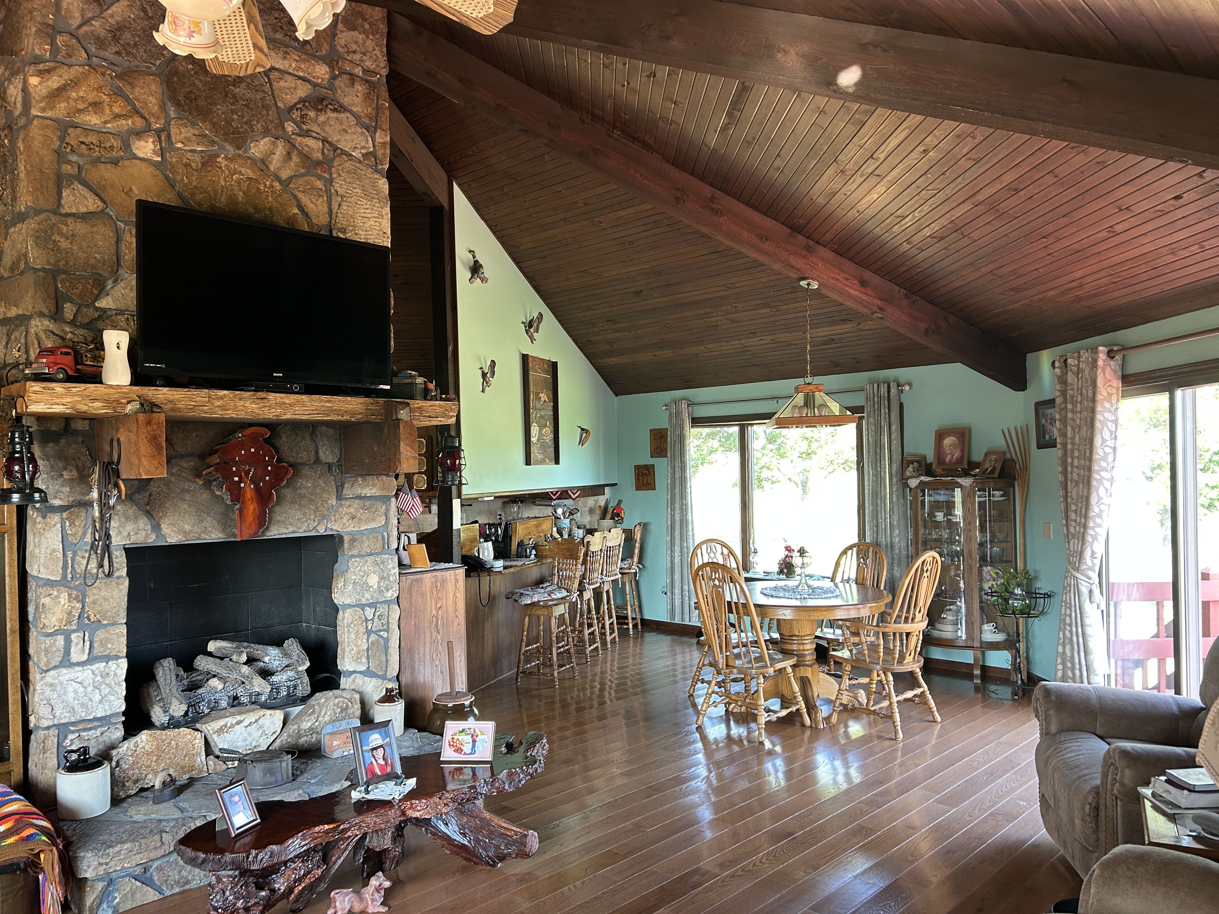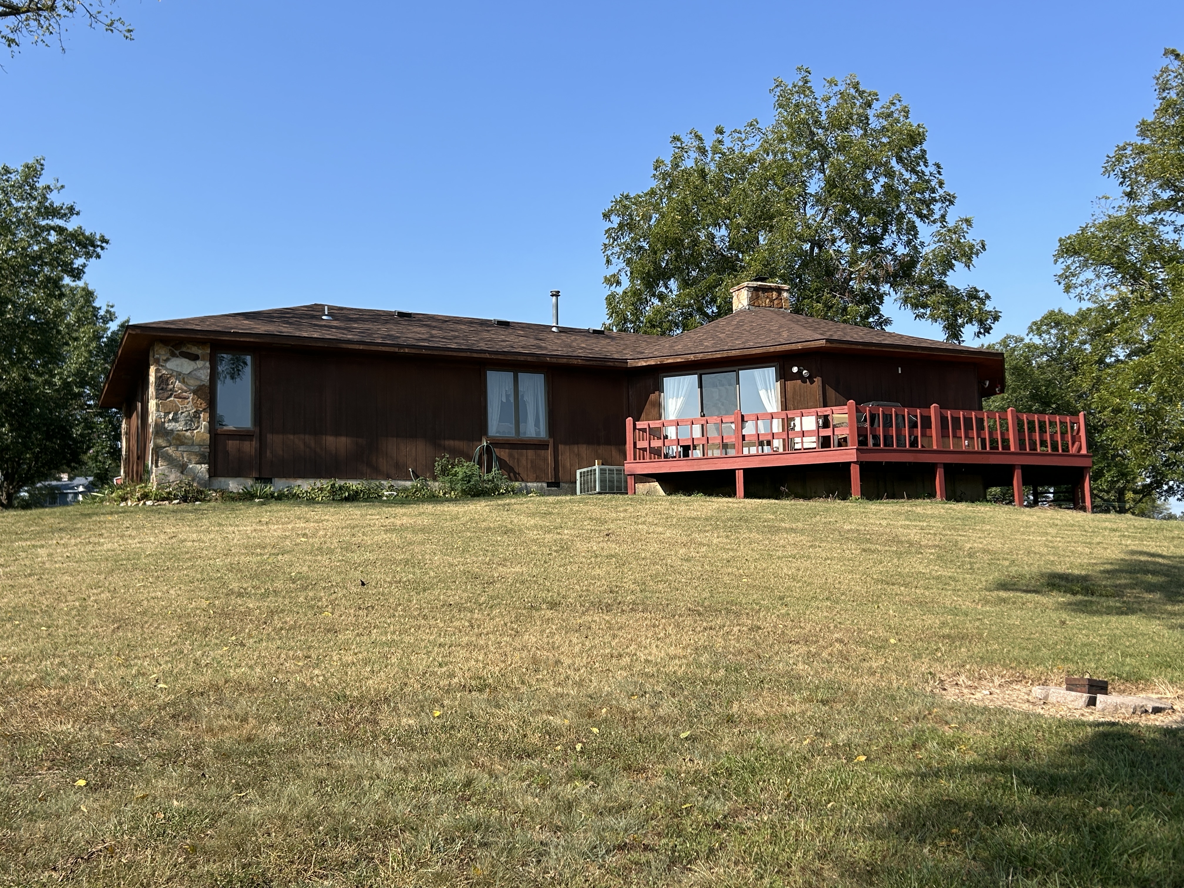 Just ½ mile from Ava, MO this 22-acre features a 3-bedroom, 2-bath home with a unique circle layout connecting the living room, kitchen, and dining area, with a beautiful rock fireplace. It's perfect for gathering with family and friends.The master bathroom features a custom walk in shower, and a double sink. The home is all on one level, and includes an attached 2-car garage, central heat and air, and a brand-new roof in 2025. Large windows invite in natural light and frame an amazing view of the surrounding landscape. Outside, the land is mostly open with scattered trees, good fencing, and a creek that runs across the front. You can house a few animals, or store your machines in the 24x30 barn, 27x40 barn, or 10x40 shed. Whether you're starting a hobby farm, or simply dreaming of peaceful country living close to town, this one is for you!