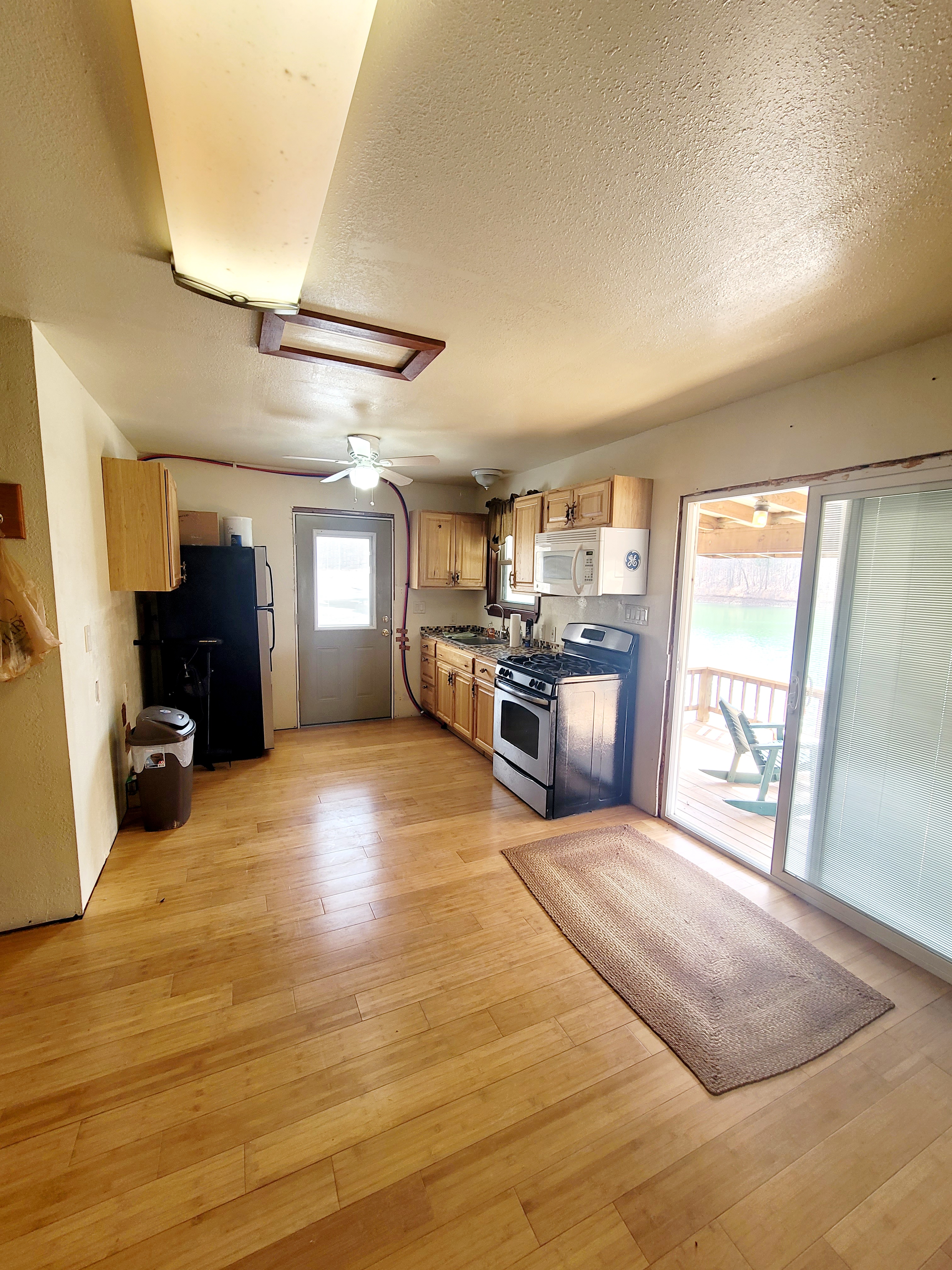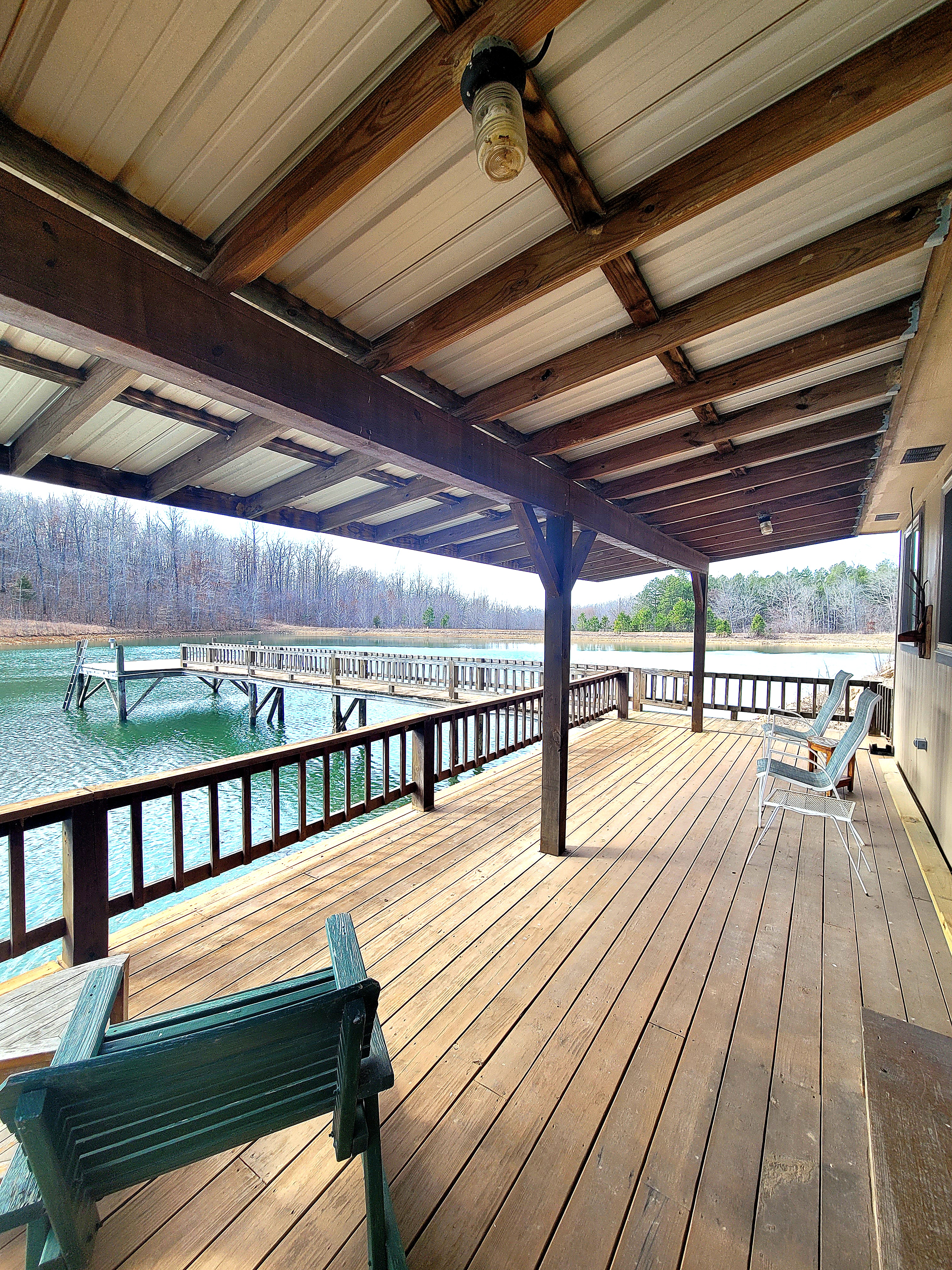 Cabin on the Lake offers- Open-concept studio-style layout, oversized deck extends out into the lake with covered front deck, Ideal for a serene Airbnb, fishing cabin, or creative studio.