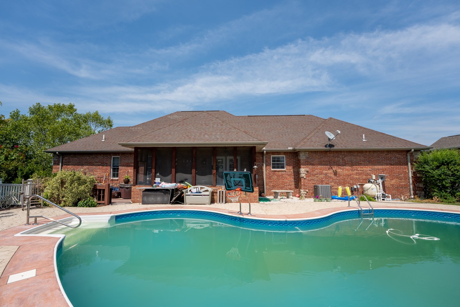 This luxury home in West Plains, MO will not last long. In the Millwood Subdivision, this property includes a spacious 3,000+ sq. ft. 4-bedroom 3-bathroom home with in-ground pool in the backyard. A combination of mostly brick and stone, landscaping and ideal outdoor living spaces complete the home's exterior. Entertain large groups or small functions in the open-concept kitchen/living room. A large kitchen island with matching granite countertops provides a casual eating area in addition to a formal dining room. There are 2 bedrooms upstairs in addition to the main level master, and 1 bedroom in the walk-out basement with en suite.