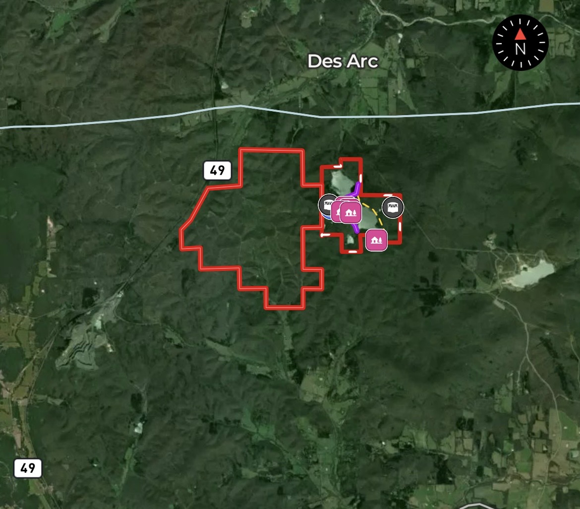 The 1430+/- Acre adjoining tract has a mix of mature and medium growth timber with numerous all weather, rocked roads. It features a number of food plot areas with small fields with strategically placed hunting blinds and stands. An older hunting cabin with power and water well are also located on this tract along with various springs. And
