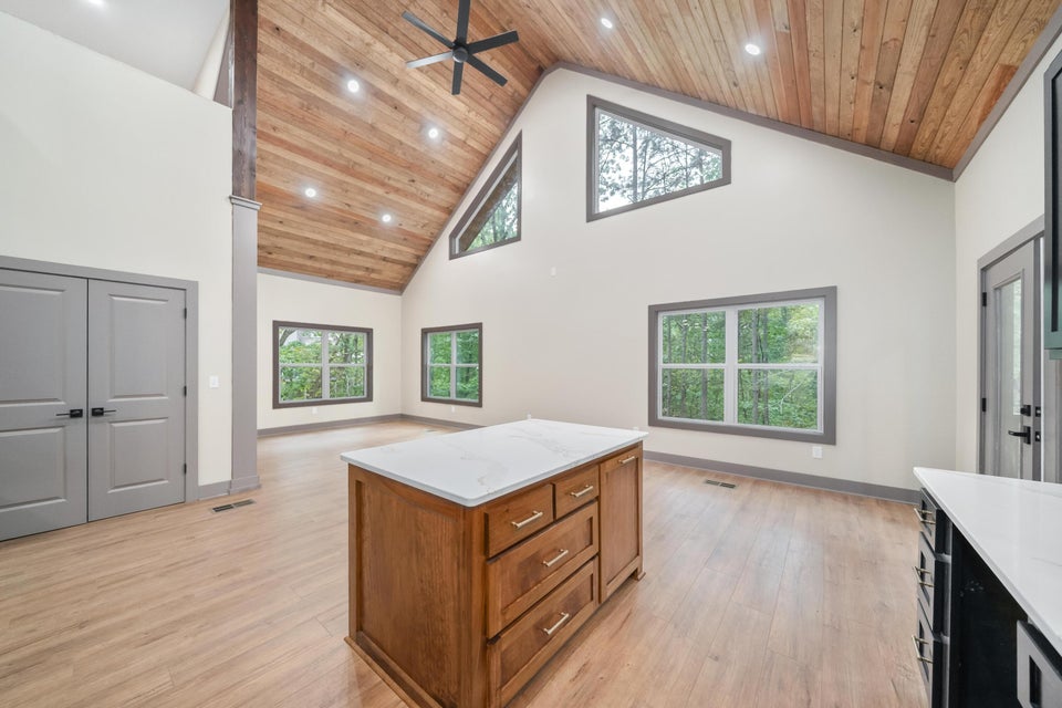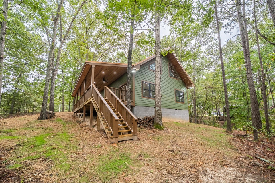 Located in the sought-after Union Harbor Development and Marina, this 3BR 3BA cabin-style home offers the perfect mix of rustic charm and modern comfort. Inside the private gated community, you'll enjoy access to a boat ramp and potential boat slips, ideal for anyone looking to embrace lake life to the fullest. The home features the primary bedroom and a guest bedroom on the main level, each with its own full bath, plus a huge loft upstairs with another bathroom, perfect for guests, a bunk room, or an additional living space. The kitchen features white quartz countertops with an open layout that flows right into the living area, making it great for cooking, relaxing, and spending time with family or friends. The primary suite includes a large walk-in closet and a beautiful walk in tile shower. Outside, the huge wrap-around porch offers plenty of space for outdoor living, from morning coffee to evening gatherings surrounded by nature. Whether you're looking for a peaceful weekend getaway or a forever home, this property truly offers the best of both worlds. All information is deemed accurate by Seller and Broker but is not guaranteed.