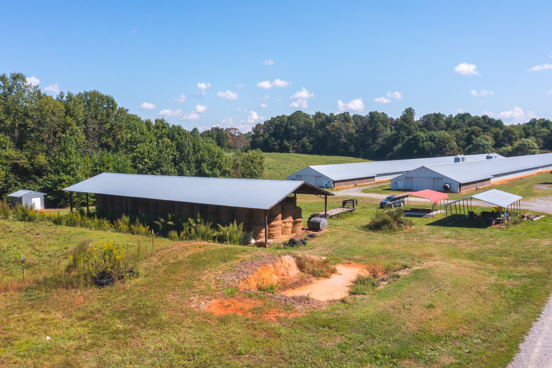 Hay Shed (72’x32’), Hay Shed (100’x38’), Litter Shed (120’ x 54’)