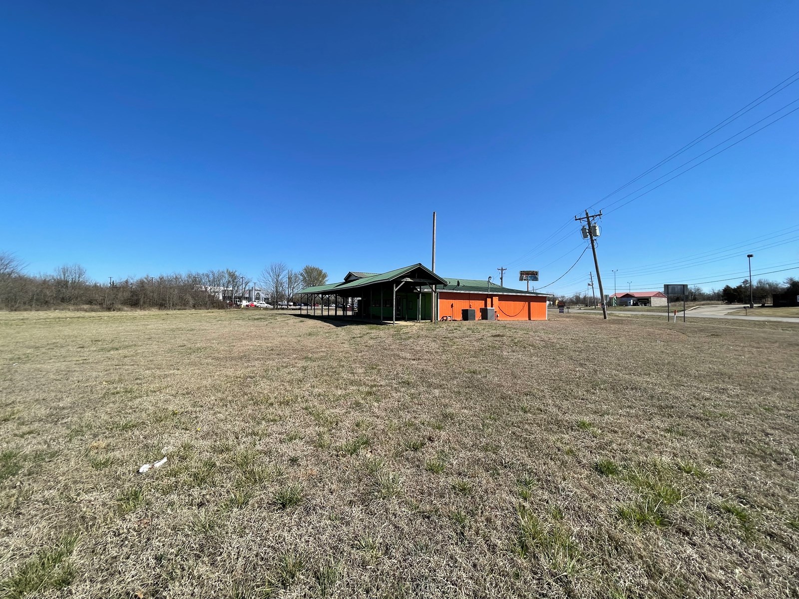 COMMERCIAL RESTAURANT BUILDING ON 1.5 ACRES FOR SALE. This 2820 sq ft BUILDING HAS A BAR AREA, WALK-IN FREEZER, OVERHEAD SMOKE VENTILATION, SHELVING, LOTS OF SEATING, and a 1380 sq ft OUTDOOR COVERED PORCH FOR DINING. LOTS OF PARKING & A GREAT LOCATION ON THE EAST SIDE OF HUGO ON HWY 70 BUSINESS.