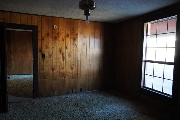 BEDROOM #2: 12 x 12, Carpet, paneled walls, white textured ceilings, light and closet.