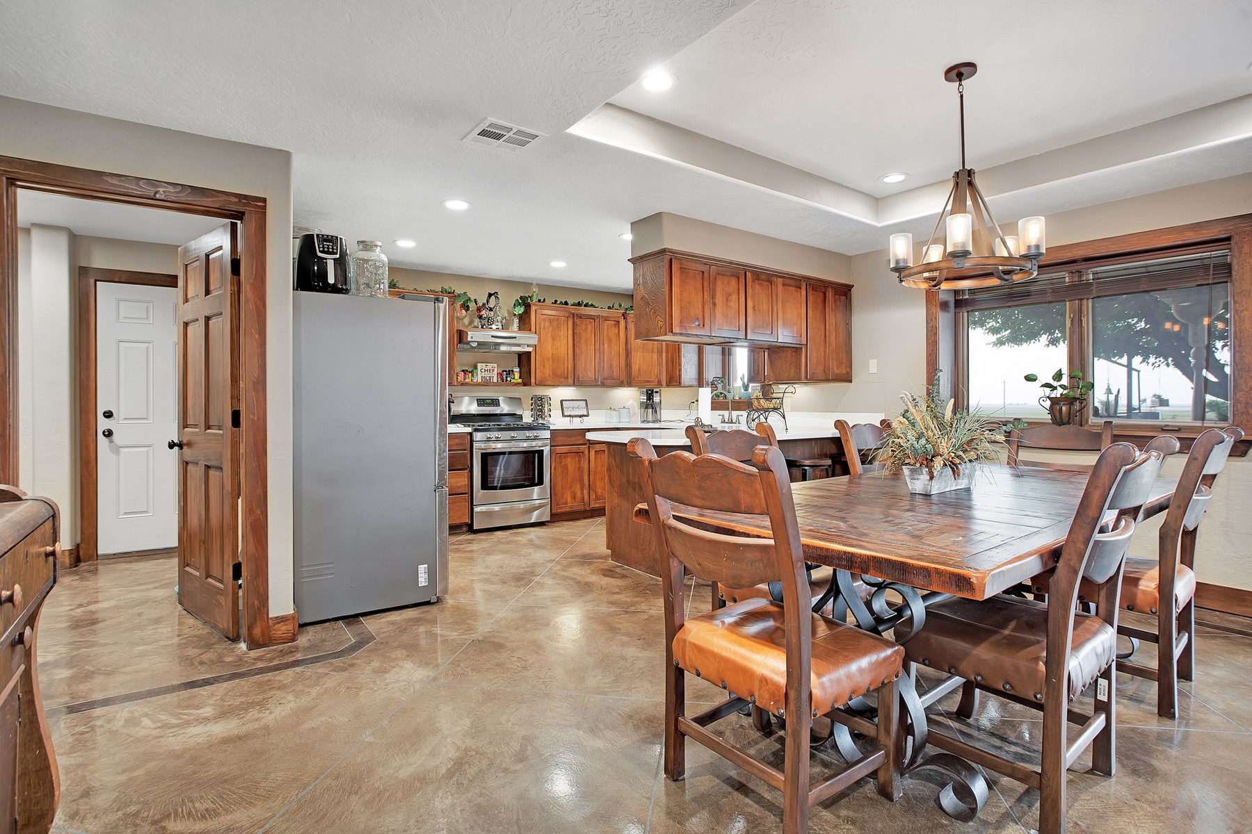 This Stunning Home Has It ALL! 4 Bedroom, 2.5 Bath, 3924 sq feet, PLUS 10 Acres and Multiple Shops!! Inside This Home You'll Be Delighted With Stained And Etched Cement Throughout! Also Inside The Home Is A Large Amount Of Custom Wood Working And Solid Doors Throughout! You'll Also Find The Ultimate MANCAVE Or Second Living Room! The Front Yard Is Equipped With A Built In Sprinkler System! The Attached Garage Cement Floor Has An Exquisite Epoxy Finish! The 40x60 Shop Features A Top Of The Line Inline Heater And Is Fully Insulated! Second Shop Is 50x80! You'll Also Find Peach And Apricot Trees Here! 22 KW Generac Generator Will Run The Entire House. Schedule Your Private Showing Today To See This Beauty In Person!