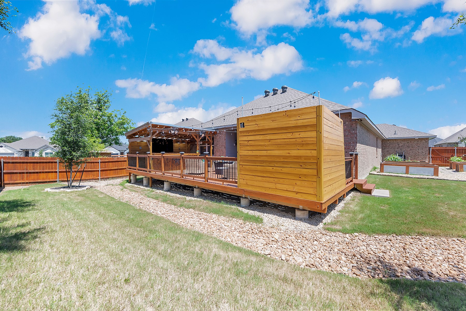 Attention Home Buyers! Stunning Nolanville, TX Home in Warrior's Legacy Subdivision off of Warriors Path. Enjoy a $550 credit toward a home warranty of your choice!Step into your sanctuary in this exceptional Nolanville, TX home, featuring a brand-new roof (September 2024) and an unbeatable outdoor entertainment area.The custom deck is perfect for elevating your leisure time and gatherings, making it a standout feature for relaxing or entertaining friends and family. Key Features:Spacious Living:Enjoy three generously sized bedrooms and two bathrooms, including a luxurious owner’s suite designed for busy mornings.Pamper yourself in the deep garden tub, enjoy the separate shower, and utilize the dual sinks and two walk-in closets for maximum convenience.Open Concept Design:The inviting open kitchen, dining, and living area create the perfect space for creating cherished memories with loved ones or impressing guests with seamless indoor and outdoor entertainment options. Versatile Office Space: Need a separate space for work or relaxation? The spacious office/flex room down the hall provides the ideal setting for productivity or personal time. Stunning Outdoor Oasis: Outside, beautifully crafted raised garden beds and a stained wood fence frame the expansive deck. A tranquil rock "stream" adds serenity to the landscape, transforming your outdoor space into a peaceful retreat. Modern Conveniences:This home features a whole-house water softener with a carbon filter tank, a three-car garage, and a full-size laundry room, making daily routines easier and more efficient.Prime Location in Central Texas Situated in the highly desirable Warriors Legacy community, this home offers easy access to I-14, H-E-B and local restaurants. Experience the best of Central Texas living with a perfect blend of comfort, convenience, and vibrant community life.Don’t Wait – Schedule Your Tour Today! Floor Plan Is For Visual Purposes Only. Measurments are not guaranteed to be accurate.