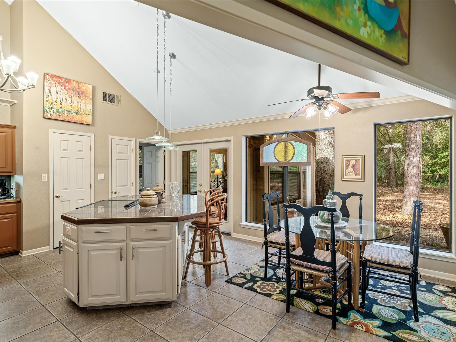 Absolutely beautiful 3BD-2BA custom home at Holly Lake Ranch! Fabulous curb appeal with expansive front deck, custom hand turned columns from New Mexico, & French entry doors opening into the home exposing stunning views from the front to back of house bringing the outdoors inside. This one owner home of a professional designer was planned for entertaining with a great flow open floor plan suitable for large gatherings. Dramatic open concept features architecturally appealing angles, soaring ceilings, warm colors, recessed lighted niches & special touches throughout. Cook's kitchen is a focal point with large island, granite counter tops, SS refrigerator, new LG range, Bosch dishwasher, butler's pantry, & tons of storage & work space. Split bedrooms with primary en suite & large walk in closet. The low maintenance 1/2 acre lot is heavily wooded around the perimeter to assure privacy. Outside amenities include sprinkler system, decks & patios everywhere to enjoy the outdoor space & nature. Nice fenced doggie area. Located in a quiet area of Holly Lake. Washer/dryer convey. Generator conveys. Truly a "must see" home.