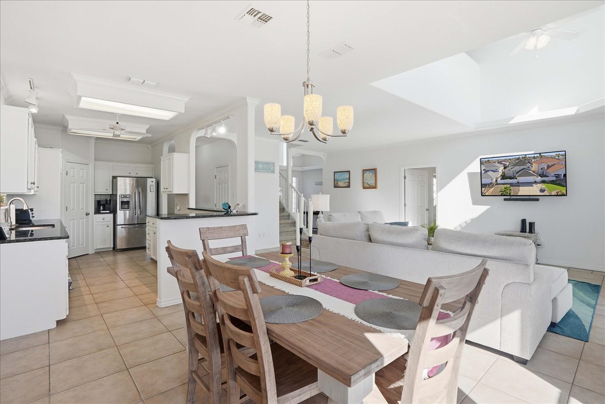 Step into your slice of paradise with this beautifully maintained 2-story canal-front home! Designed for the ultimate coastal lifestyle, this bright and open retreat welcomes you with sunlit living spaces and seamless flow to the dining area perfect for entertaining. The chef-inspired kitchen will impress with Thermador gas cooking, stainless steel appliances, ample cabinetry with pull-out drawers, and a walk-in pantry for all your culinary essentials. Your primary suite downstairs offers a true getaway with an oversized shower, jetted soaking tub, dual vanities, and private access to the back deck for morning coffee or evening sunsets. Upstairs, enjoy a spacious loft, two generous bedrooms, and a flex room with HVAC; ideal for a home office, craft space, or extra storage. Outdoor living at its finest! Triple decks provide endless views and relaxation spots; from the top deck’s panoramic breezes, to the main-level pergola with outdoor dining and lounge area. Down by the water, you’ll find a fish-cleaning station, boat lift, and space for your kayak. Extras include hurricane-rated upstairs windows, custom shutters for hurricane season and a night fishing light in the canal for after-dinner fun. TURN-KEY and ready to enjoy, your coastal lifestyle starts here!