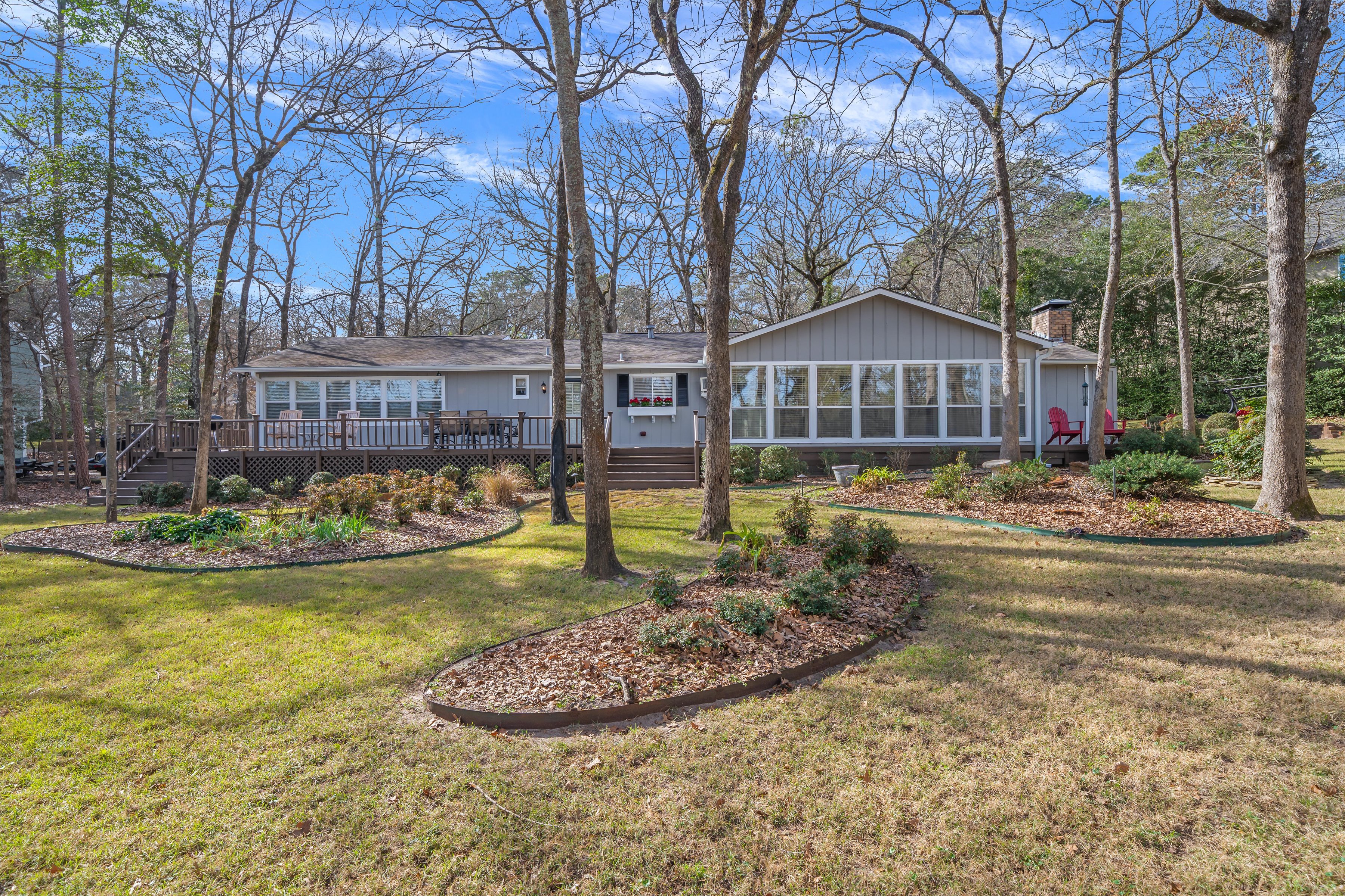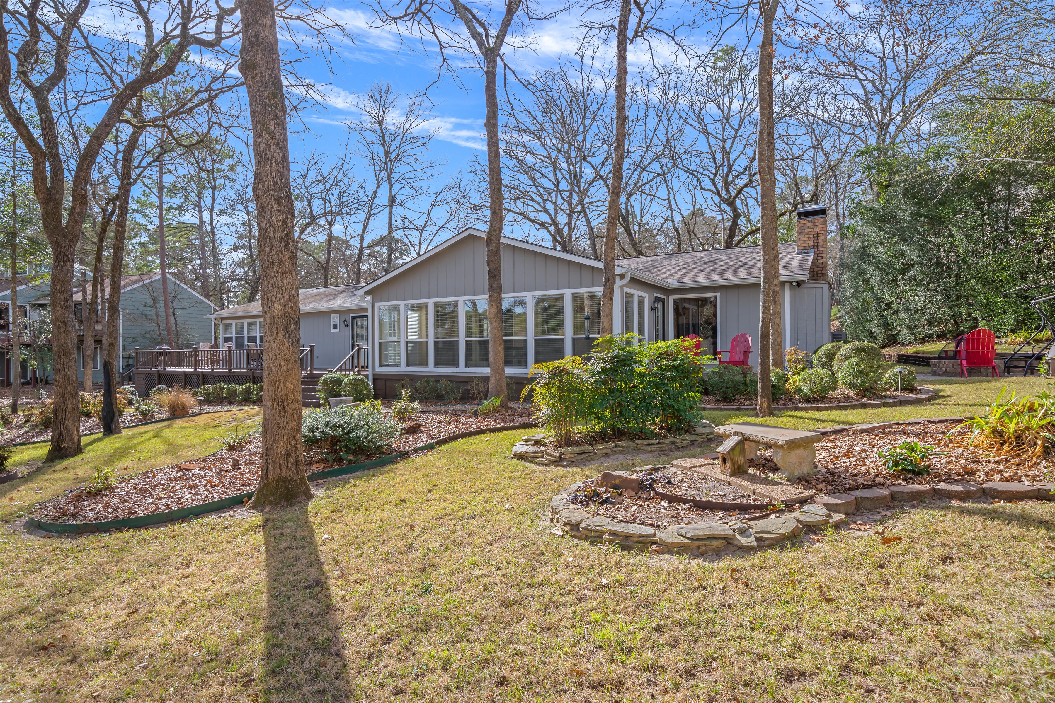 Charming cottage style 3BD-3BA home definitely has the Holly Lake Ranch vibe, & is located on one of the most desirable streets in this Gated Community.