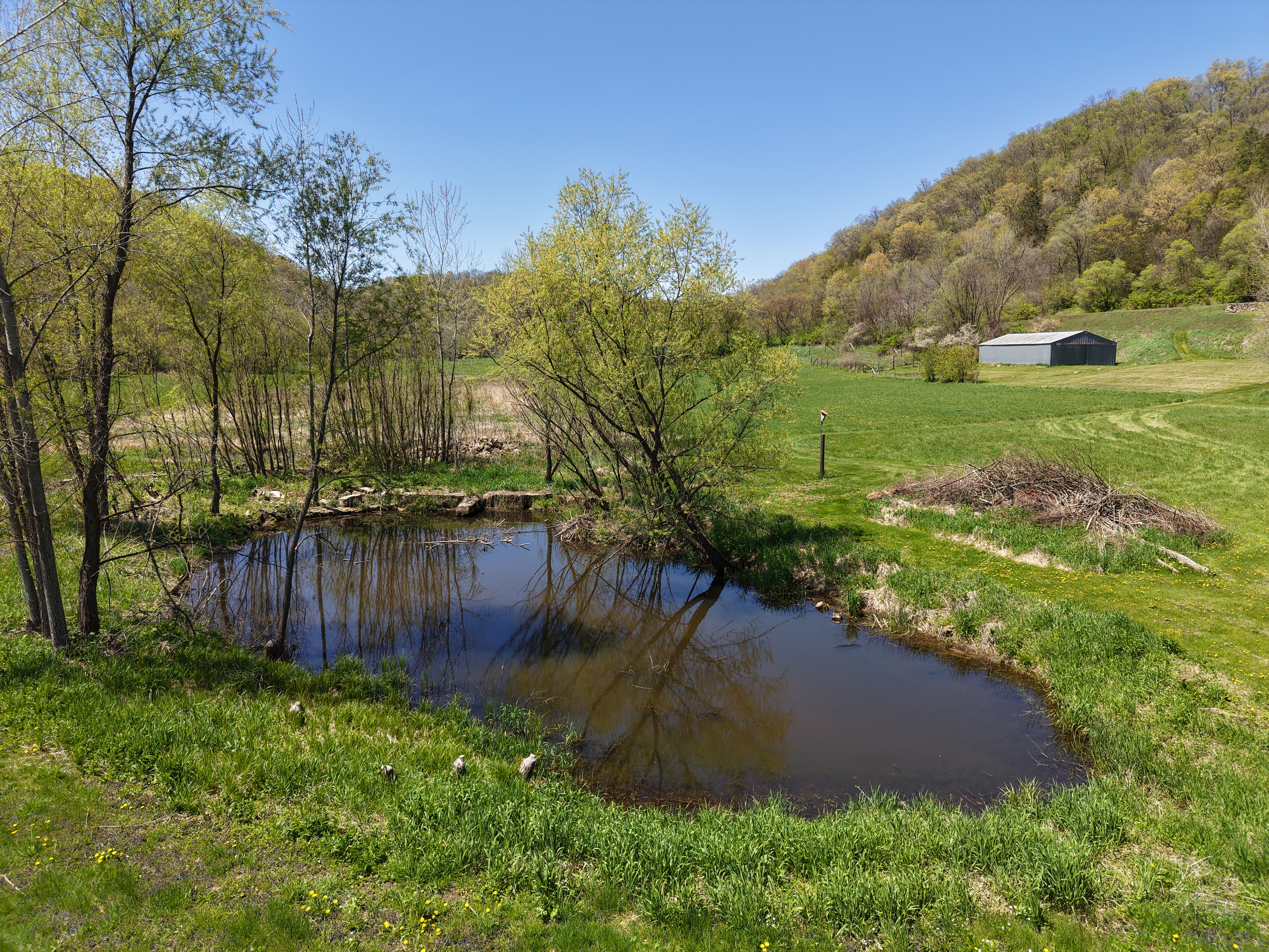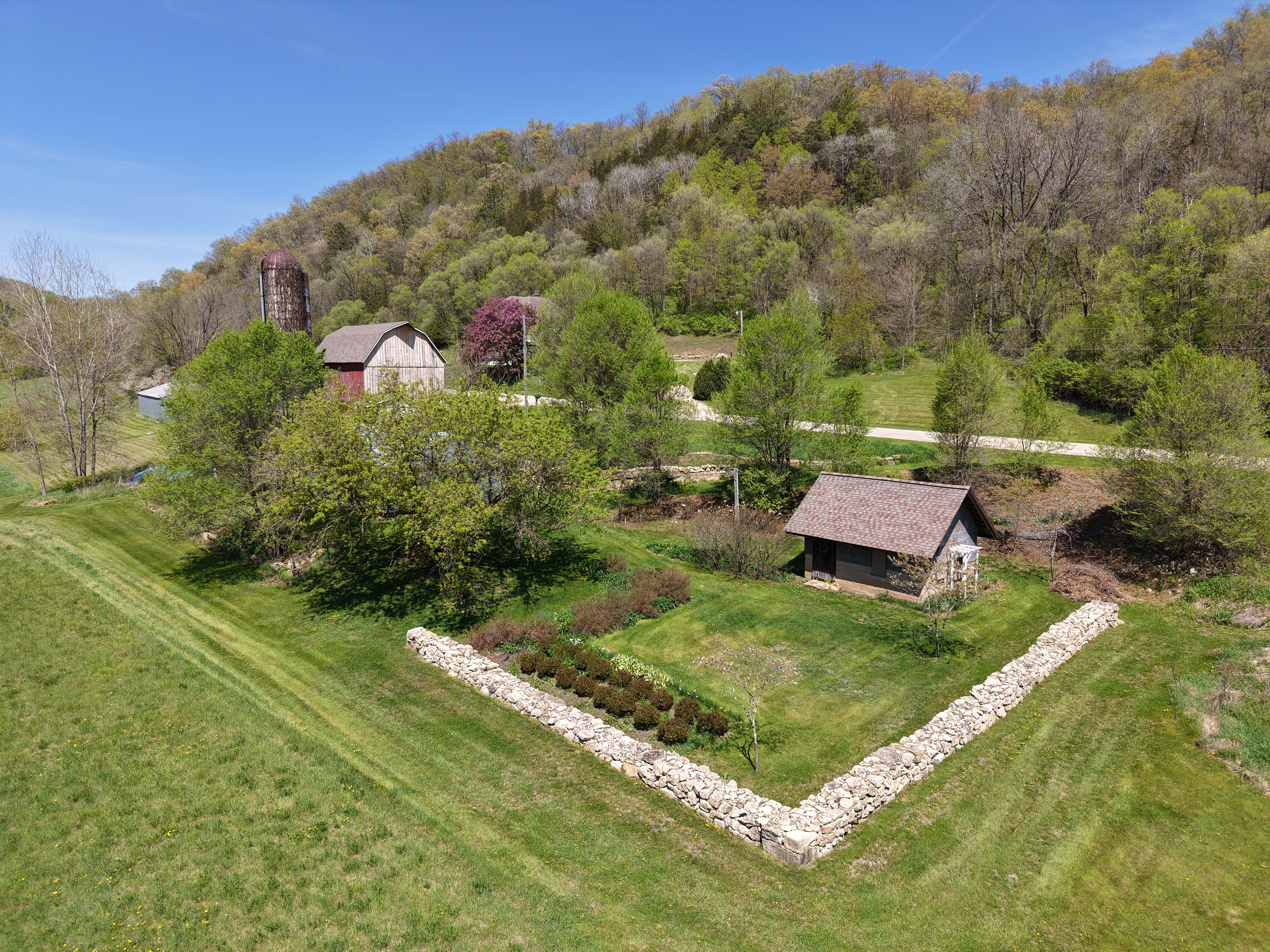 For the past 24 years, this breathtaking 100-acre property has been a true labor of love—carefully cultivated, thoughtfully restored, and deeply cherished. Now, it’s ready to welcome its next steward. Tucked into the rolling hills and valleys of the Driftless Area in Southwest Wisconsin, this land offers a rare blend of natural beauty and functional serenity. From ridgetop views to valley seclusion, the landscape boasts a ¼-mile of Class II trout stream (Nederlo Creek), a private pond, exposed rock outcroppings, abundant wildlife, woods, open pasture, a freshwater spring, and meticulously crafted stone walls and terraces.
