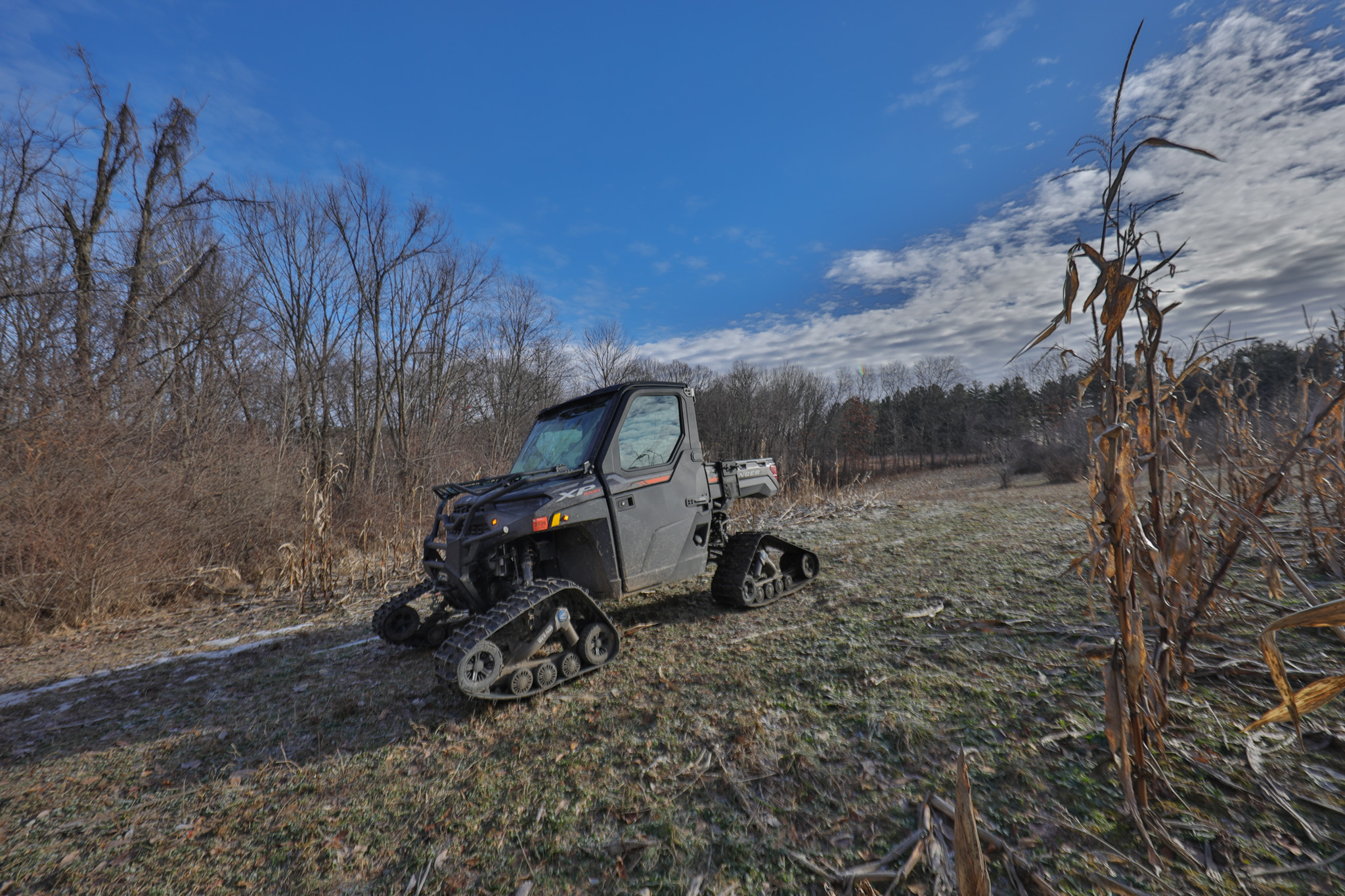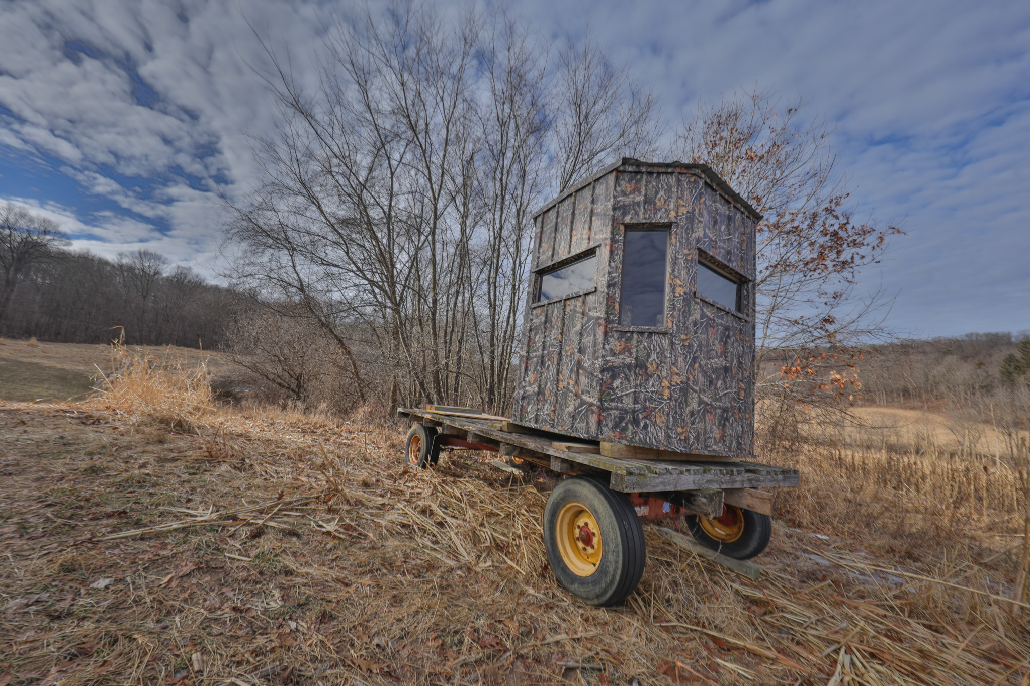 The habitat enhancements on this farm take it to another level. The land underwent a comprehensive transformation guided by a professional consultation with Bill Winke, one of the most respected whitetail authorities in the country. The result is a purpose-built hunting property featuring four strategically placed food plots, standing crop fields, and targeted timber pocket cuts designed to thicken cover and enhance daylight movement. Gigantic miscanthus has been planted along the roadway, creating a privacy screen that will soon stand as a wall of cover, security, and seclusion. Multiple treestand setups and an elevated box blind are already in place—turnkey and ready to hunt from day one.